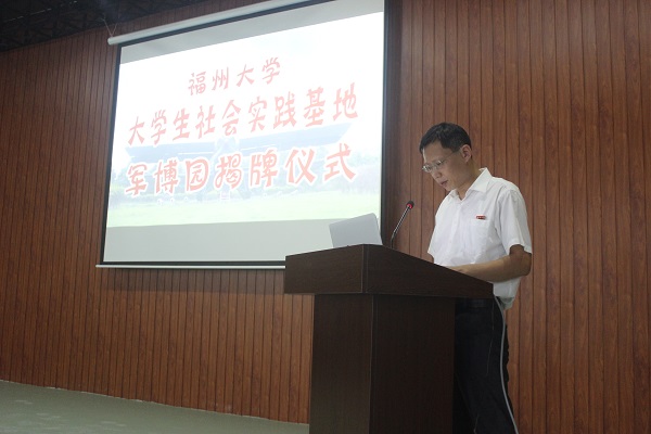 与福州军博园的进一步深化合作表示殷切期盼,并对福大青年学子自觉提高军事文化素养、认真学习国防知识寄予厚望。他在发言中强调:“青年是祖国的未来、是民族的希望、是党的事业的接班人,青年更要心怀强烈的历史使命感和社会责任感,自觉融入民族复兴的伟大征程中,为强国梦、强军梦发挥自己应有的作用。”