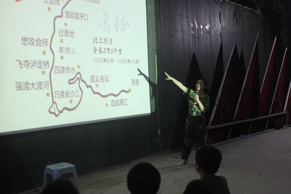赴战狼军校实践队的队员们以别样的方式为“小特种兵们”讲述长征精神,并以长征之路为主线讲解相关的诗词内容,达到国学教育与革命精神教育相结合的目的。