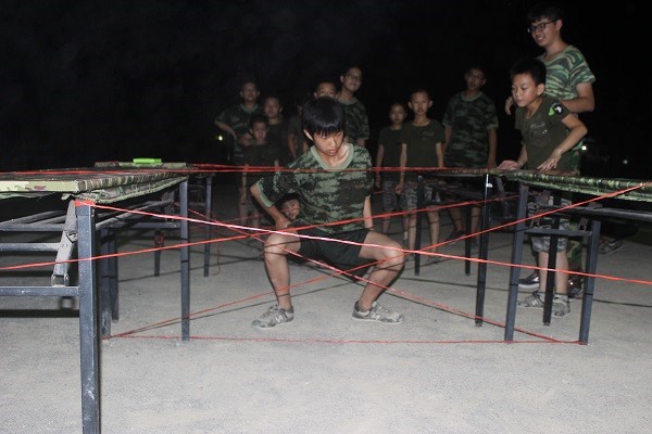 最后一个环节,是让“小特种兵们”通过实践队员们设计的游戏——‘巧渡金沙江’、‘过草地’、‘千里会师’来感受长征历程,如“过草地”游戏,需要“小特种兵们”穿越设计过的“战线”,以此使“小特种兵们”能一定程度上更真切地体验红军长征的辛苦。游戏中,每个孩子都在积极的思考如何通关以顺利的走过。