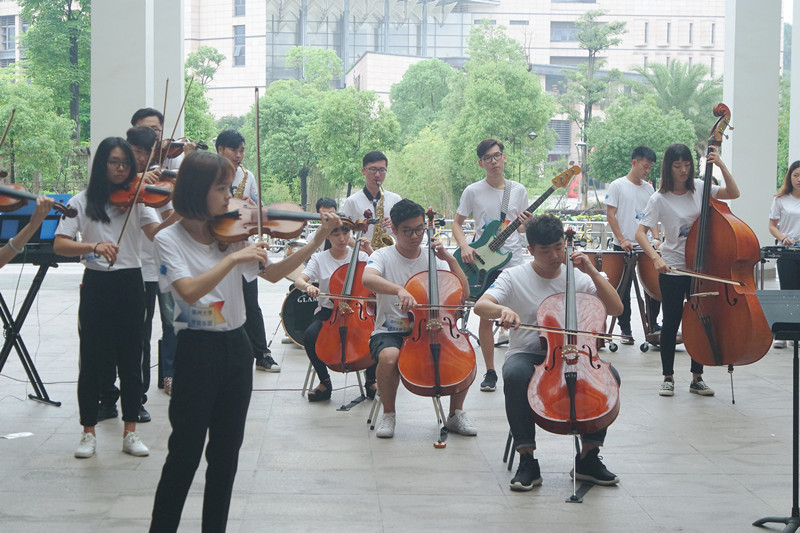 “哇塞!什么声音!快去看看!”6月4日上午10点,一阵动听的管弦声突然在福大东三旋转楼梯响起。微妙的悬疑色彩,动感的旋律,炫酷的风格,迅速地吸引了周围学生的目光,大批观众迅速集结,来自校管弦乐团的成员们为现场观众奉上一场视听盛宴!