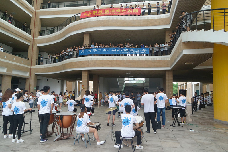 管弦乐团的成员所进行的一次音乐快闪活动,既是为宣传世界环境日、提醒大家保护环境,同时也是为纪念福大管弦乐团成立五周年,更是为即将毕业的学长学姐进行的送旧活动,为他们的大学时光画上圆满的句号。此次活动中人文学院音乐系王盺野老师担任指导老师。