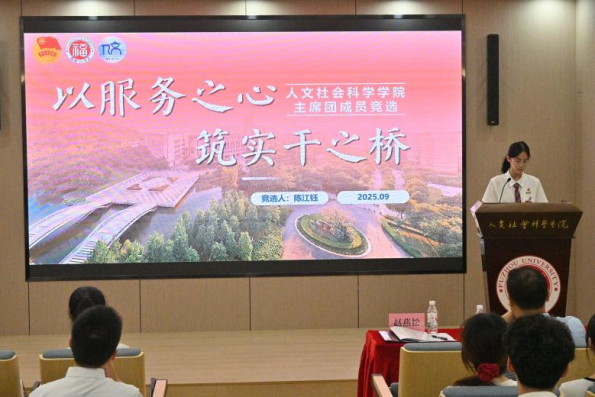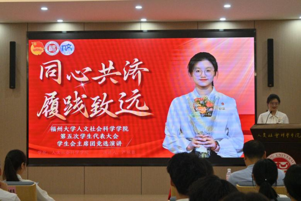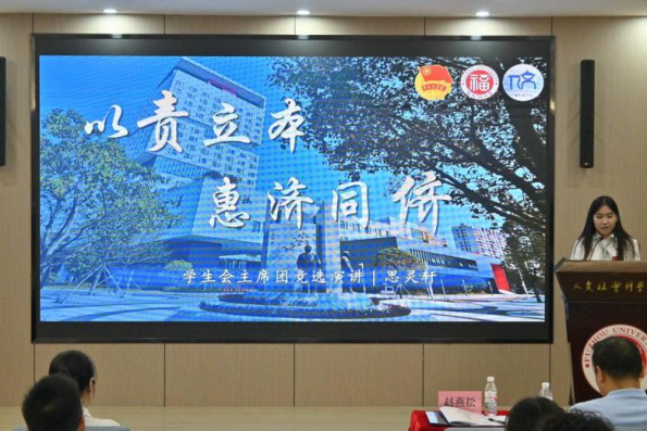 人文学院新一届主席团代表紧扣自身实践经历与能力优势展开竞选演讲。