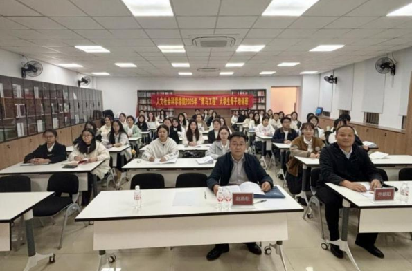 12月18日下午,人文学院“青年马克思主义培养工程”大学生骨干培训班开班动员暨第一讲在学生活动中心117教室召开,学院党委副书记赵燕松、团委书记齐朝阳、辅导员陈天龙出席活动。